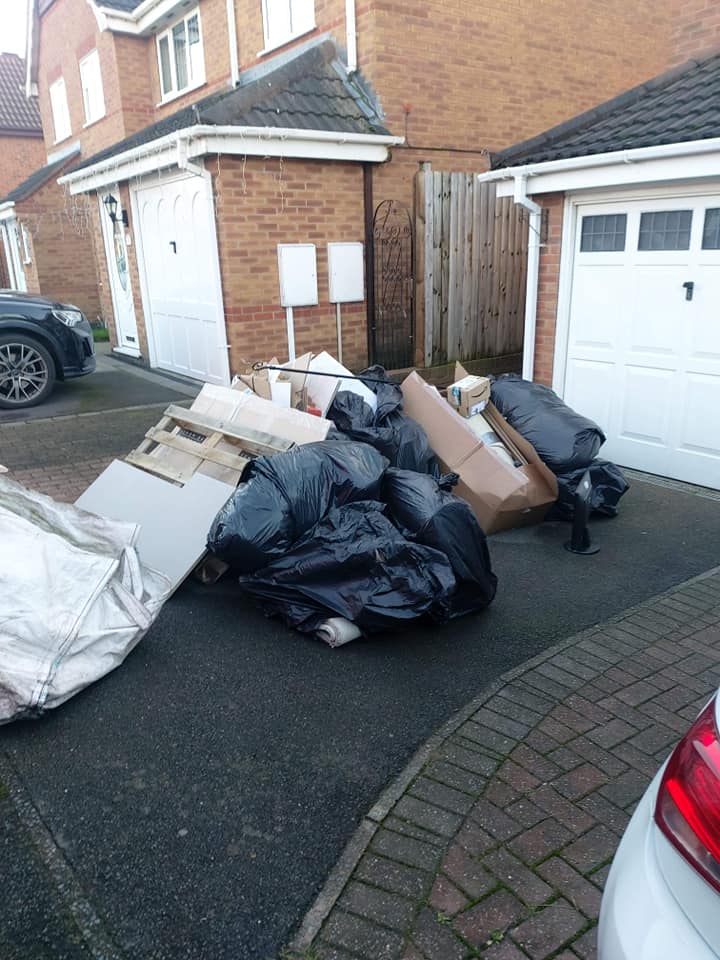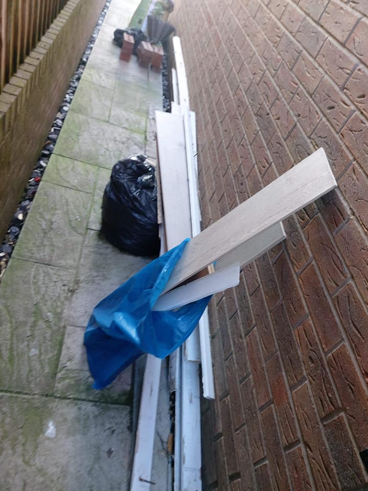 Home renovation waste removed from side of house and driveway.